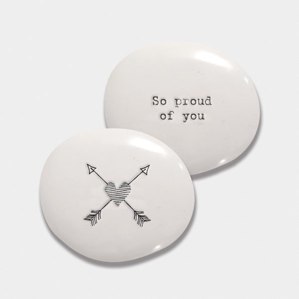 Simple, heartfelt, and full of meaning — East of India Pebbles are small porcelain tokens designed to say so much without words. Each smooth, hand-finished pebble is beautifully stamped with an inspiring word, symbol, or message to bring comfort, hope, or encouragement. Perfect to slip into a pocket, place on a windowsill, or gift to someone special — a gentle reminder of love, strength, or friendship. Timeless in design and tender in spirit, these tiny treasures are part of what makes East of India so loved
